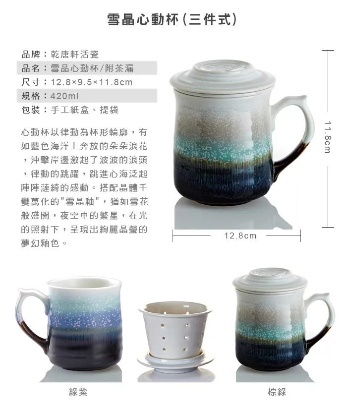 乾唐轩活瓷浪纹高杯 三件套带茶漏 360ml雪晶釉喝水陶瓷杯 善融商务个人商城仅售4 00元 价格实惠 品质保证 水杯